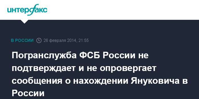 Погранслужба ФСБ России не подтверждает и не опровергает сообщения о нахождении Януковича в России