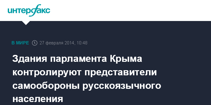 Симферополь. 27 февраля. INTERFAX.RU - Здания парламента и правительства Крыма контролируются представителями самообороны русскоязычного населения Крыма, сообщили "Интерфаксу" местные источники.
