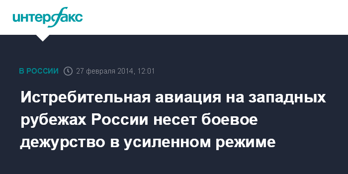 Москва. 27 февраля. INTERFAX.RU - Самолеты истребительной авиации Западного военного округа в рамках проверки боеготовности, которая проводится по распоряжению Верховного главнокомандующего Вооруженными силами РФ, ведут боевое дежурство по охране воздушного пространства страны в усиленном режиме, информирует Минобороны РФ.