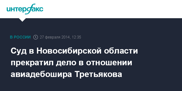 Новосибирск. 27 февраля. INTERFAX.RU - Мировой суд города Обь в четверг прекратил уголовное дело в отношении бывшего вице-губернатора Челябинской области и топ-менеджера "Росгеологии" Андрея Третьякова, из-за которого "Боинг-737" совершил вынужденную посадку в Новосибирске в декабре прошлого года.
