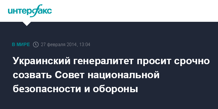 Киев. 27 февраля. INTERFAX.RU - Украинские генералы и адмиралы обратились к спикеру парламента Александру Турчинову, лидеру фракции "Батькивщина" Арсению Яценюку и фракции УДАР Виталию Кличко с просьбой созвать заседание Совета национальной безопасности и обороны.