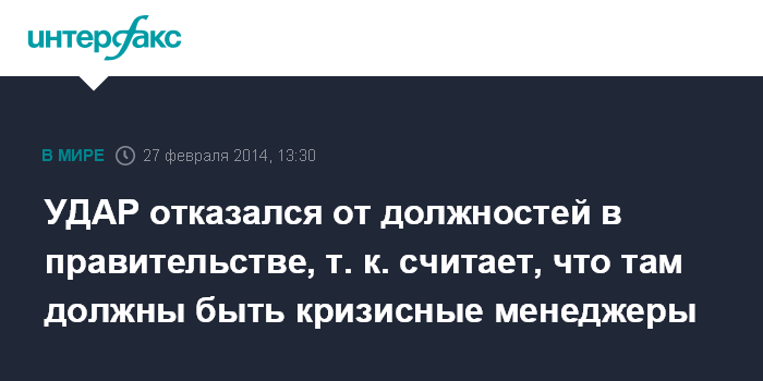 УДАР отказался от должностей в правительстве, т. к. считает, что там должны быть кризисные менеджеры
