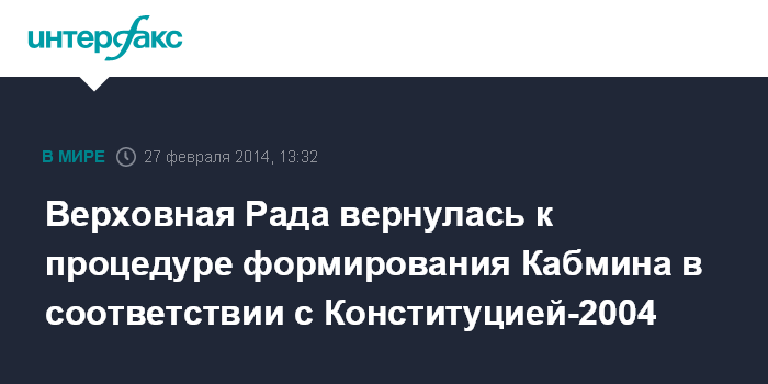 Москва. 27 февраля. INTERFAX.RU - Верховная Рада Украины внесла изменения в закон о кабинете министров в соответствии с Конституцией 2004 года.