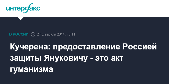 Москва. 27 февраля. INTERFAX.RU - Предоставляя Виктору Януковичу защиту, Москва руководствовалась, прежде всего, гуманитарными, а не правовыми соображениями, считает член Общественной палаты России, адвокат Анатолий Кучерена.
