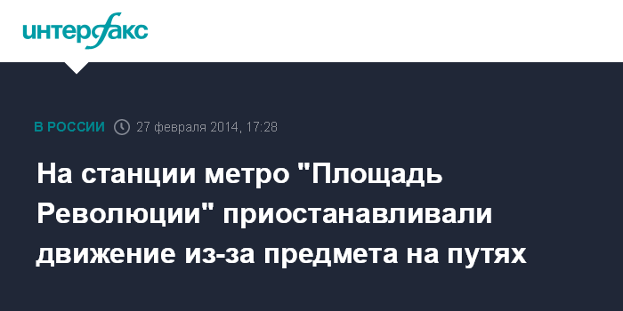 Москва. 27 февраля. INTERFAX.RU - Движение поездов метро на станции "Площадь Революции" Арбатско-Покровской линии приостанавливалось в четверг днем на 10 минут для извлечения постороннего предмета, сообщили "Интерфаксу" в информационном центре столичного департамента транспорта и развития дорожно-транспортной инфраструктуры.