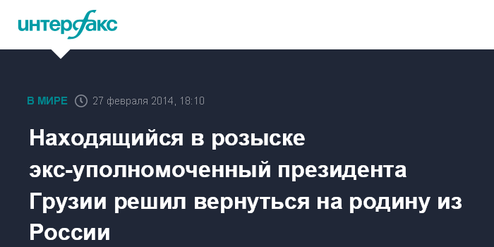 Находящийся в розыске экс-уполномоченный президента Грузии решил вернуться на родину из России