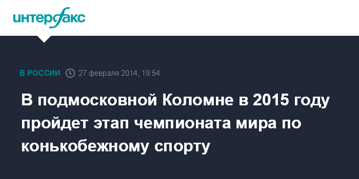 Москва. 27 февраля. INTERFAX.RU - В следующем году в подмосковной Коломне пройдет этап чемпионата мира по конькобежному спорту, сообщил в четверг в ходе прямого эфира на телеканале "Подмосковье" губернатор Московской области Андрей Воробьев.