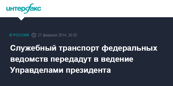 Москва. 27 февраля. INTERFAX.RU - В настоящее время прорабатывается вопрос о передаче в ведение Управления делами президента служебного транспорта федеральных ведомств, сообщил управляющий делами президента Владимир Кожин.