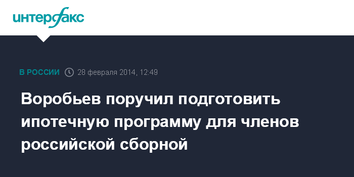 "Поручаю в двухнедельный срок проработать для членов сборной России возможность приобретения льготной ипотеки. Если член сборной России испытывает потребность покупки жилья, мы предоставим ему льготную ипотеку с условием преподавания (в Подмосковье. - ИФ). Думаю, что это послужит дополнительным импульсом для развития массового спорта", - сказал А. Воробьев.