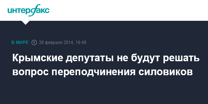 Москва. 28 февраля. INTERFAX.RU - Член президиума Верховного Совета Крыма Константин Бахарев заявляет, что ни на вчерашнем пленарном заседании крымского парламента, ни на сегодняшнем, которое планируется, не будут рассматриваться вопросы о переподчинении силовых органов крымской власти.