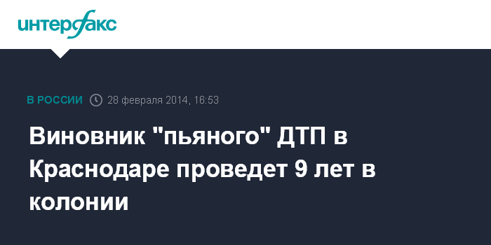 Москва. 28 февраля. INTERFAX.RU - Первомайский районный суд Краснодара в пятницу приговорил к 9 годам колонии общего режима Артура Швеца - виновника резонансного ДТП в Краснодаре, в результате которого три человека погибли, еще один пострадал.