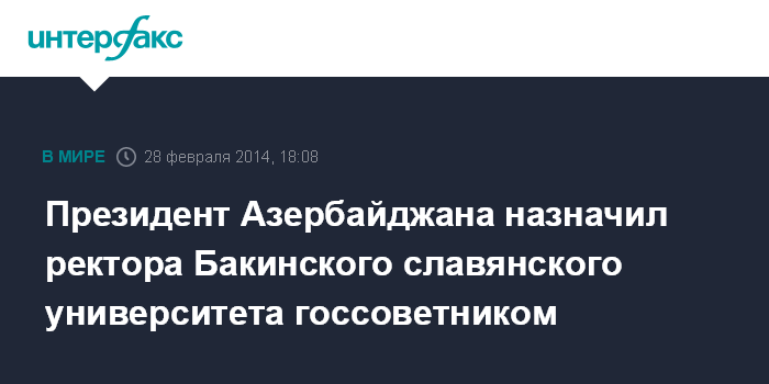 Президент Азербайджана назначил ректора Бакинского славянского университета госсоветником