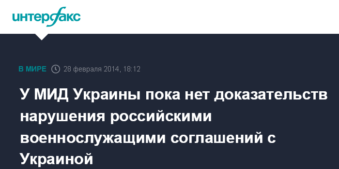 Москва. 28 февраля. INTERFAX.RU - И.о. министра иностранных дел Украины Андрей Дещица попросил министра внутренних дел Арсена Авакова предоставить доказательства нарушения военнослужащими Черноморского флота Российской Федерации двусторонних соглашений по базированию ЧФ РФ в Крыму.