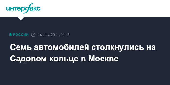 Москва. 1 марта. INTERFAX.RU - ДТП с участием семи автомобилей произошло на внешней стороне Садового кольца в районе станции московского метро "Маяковская", сообщили "Интерфаксу" в пресс-службе управления ГИБДД РФ по Москве. "По предварительным данным, на внешней стороне Садового кольца в районе станции метро "Маяковская" произошло ДТП с участием семи автомобилей. Пострадало по меньшей мере четыре человека, информация о пострадавших уточняется", - сказал сотрудник пресс-службы "Интерфаксу" в субботу.