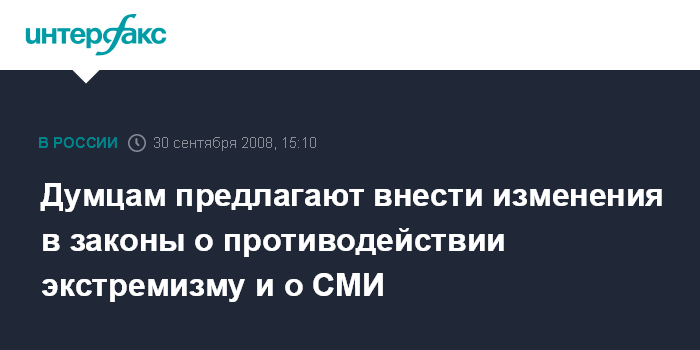 Думцам предлагают внести изменения в законы о противодействии экстремизму и о СМИ