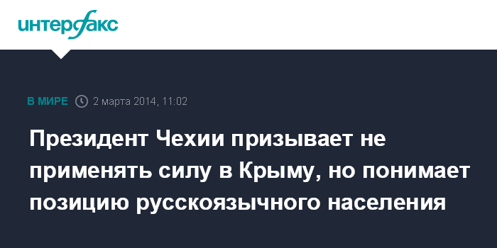 Президент Чехии призывает не применять силу в Крыму, но понимает позицию русскоязычного населения