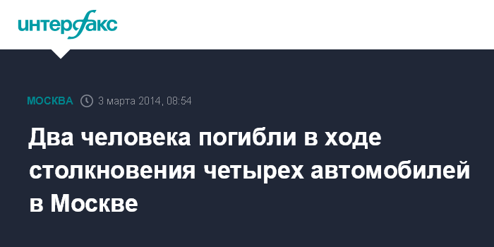 Два человека погибли в ходе столкновения четырех автомобилей в Москве