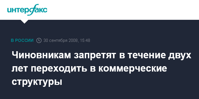 Чиновникам запретят в течение двух лет переходить в коммерческие структуры