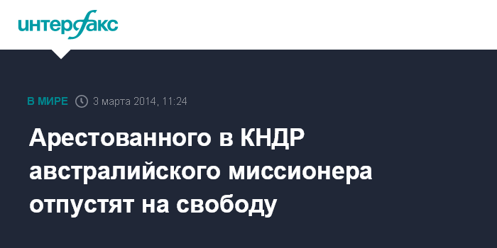 Арестованного в КНДР австралийского миссионера отпустят на свободу