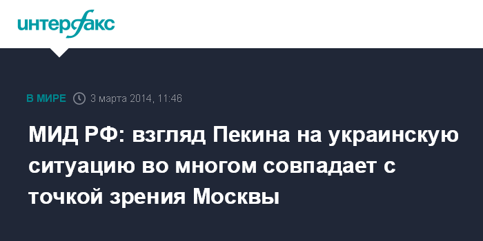 МИД РФ: взгляд Пекина на украинскую ситуацию во многом совпадает с точкой зрения Москвы