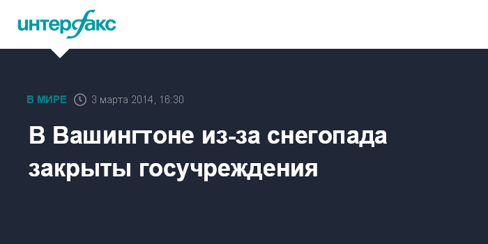 Москва. 3 марта. INTERFAX.RU - Государственные учреждения в Вашингтоне в понедельник будут закрыты из-за надвигающихся на американскую столицу обильных снегопадов.