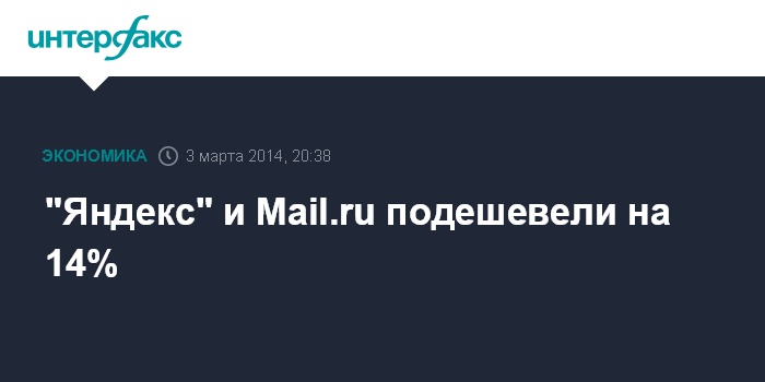 Москва. 3 марта. INTERFAX.RU - Котировки российских интернет- и IT-компаний, каждая из которых ведет бизнес на Украине, на зарубежных биржах в понедельник обрушились сильнее, чем российский рынок акций.