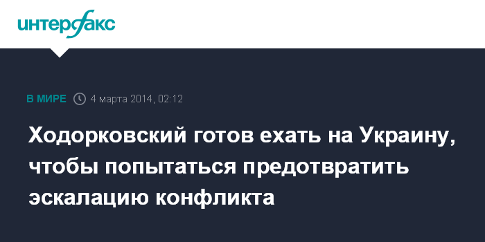 Москва. 4 марта. INTERFAX.RU - Экс-глава "ЮКОСа" Михаил Ходорковский заявил, что готов отправиться на Украину, чтобы попытаться предотвратить кровопролитие в этой стране.