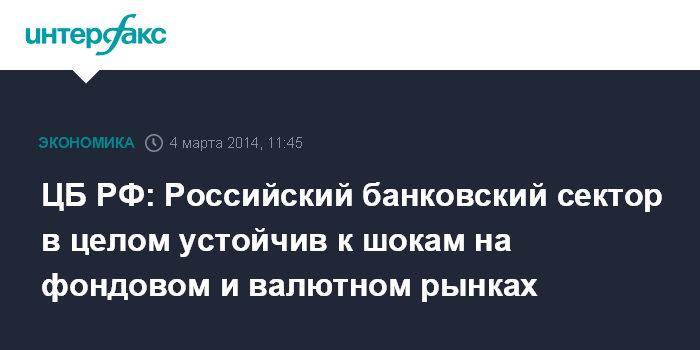 ЦБ РФ: Российский банковский сектор в целом устойчив к шокам на фондовом и валютном рынках
