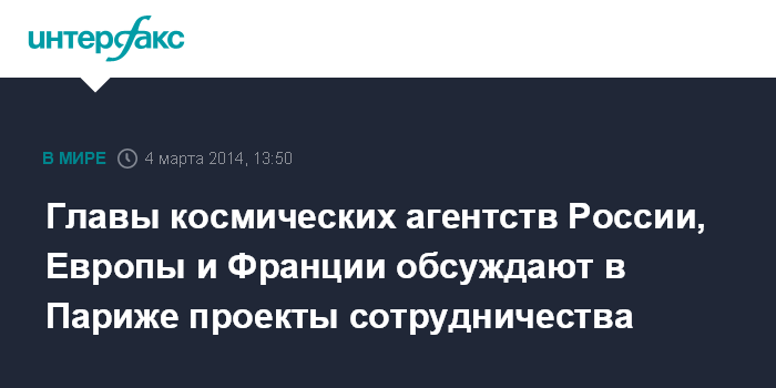 Главы космических агентств России, Европы и Франции обсуждают в Париже проекты сотрудничества