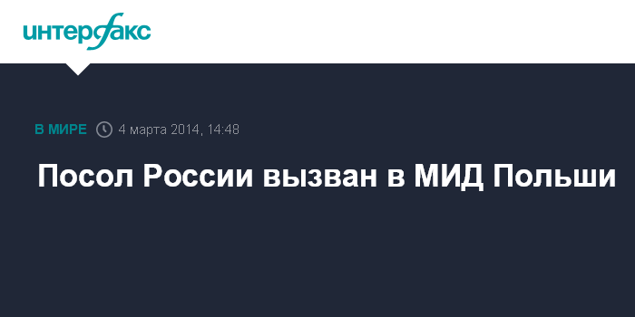 Москва. 4 марта. INTERFAX.RU - Российский посол в Варшаве вызван во вторник в польский МИД, сообщила пресс-секретарь внешнеполитического ведомства Польши Катаржина Пельчиньская-Наленч.