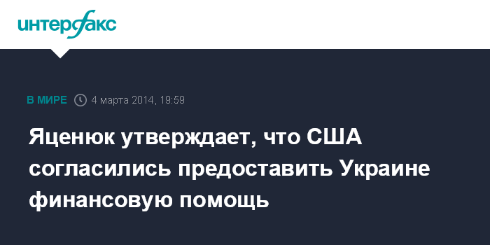 Киев. 4 марта. INTERFAX.RU - США готовы оказать Украине финансовую помощь, сообщил премьер-министр Арсений Яценюк.