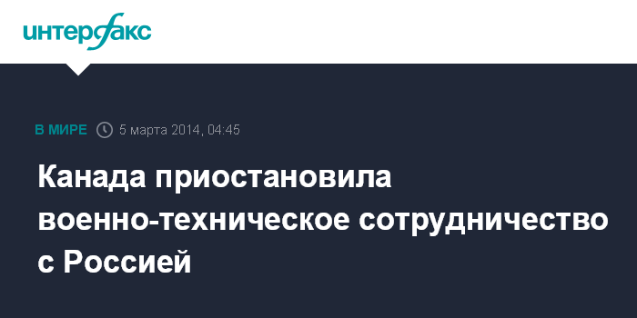 Вашингтон. 5 марта. ИНТЕРФАКС - Премьер-министр Канады Стивен Харпер объявил о приостановке военно-технического сотрудничества с Россией, сообщает в среду американский телеканал Си-Эн-Эн.