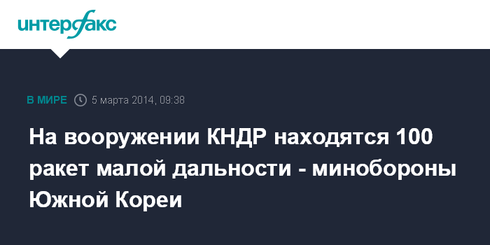 Москва. 5 марта. INTERFAX.RU - КНДР располагает около 100 ракет KN-02, имеющих дальность полета до 170 километров, сообщили в среду в министерстве обороны Южной Кореи.
