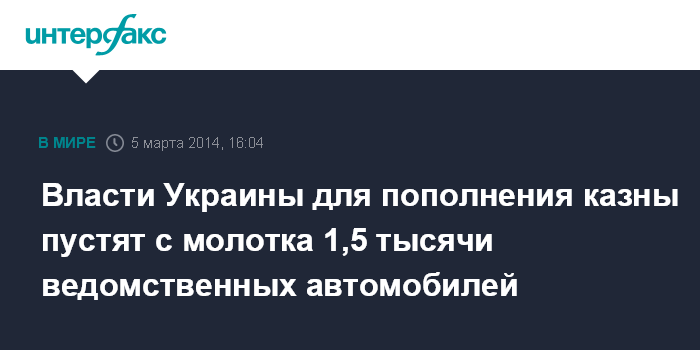 Москва. 5 марта. INTERFAX.RU - Кабинет министров Украины принял постановление о проведении аукционной продажи 1,5 тысячи закрепленных за министерствами и ведомствами страны автомобилей.