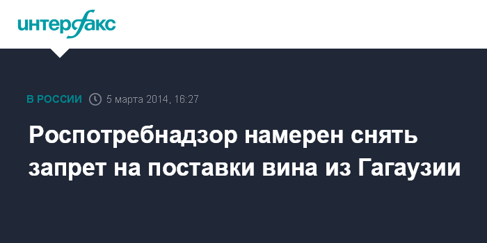 Москва. 5 марта. INTERFAX.RU - Роспотребнадзор планирует снять запрет на поставки винодельческой продукции из Гагаузии - автономного территориального образования на юге Молдавии, сообщил сайт Роспотребнадзора в среду.