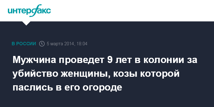 Москва. 5 марта. INTERFAX.RU - Самарский областной суд оставил без изменения приговор местному жителю, который убил соседку, чьи козы паслись на его огороде, сообщает в среду пресс-служба прокуратуры Самарской области.