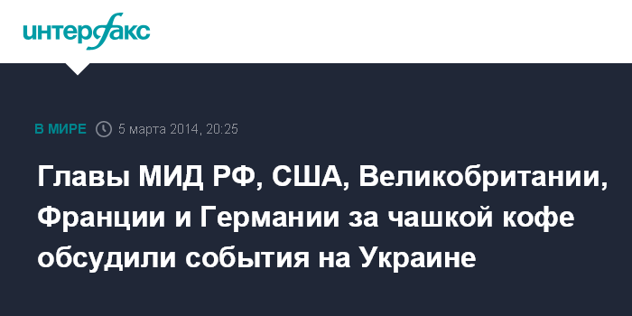 Главы МИД РФ, США, Великобритании, Франции и Германии за чашкой кофе обсудили события на Украине
