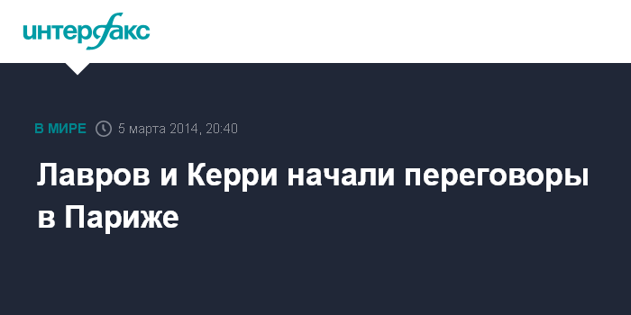 Москва. 5 марта. INTERFAX.RU - Встреча министра иностранных дел России Сергея Лаврова и госсекретаря США Джона Керри по ситуации на Украине началась в Париже.
