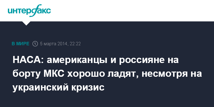 Глава НАСА сделал это заявление в ответ на просьбу журналистов прокомментировать, изменились ли планы НАСА относительно сотрудничества с российскими коллегами в связи с ситуацией на Украине.