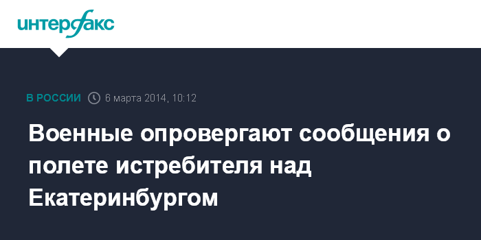 Москва. 6 марта. INTERFAX.RU - Жители Екатеринбурга на городских порталах сообщают, что стали свидетелями полета над городом военного истребителя без опознавательных знаков.