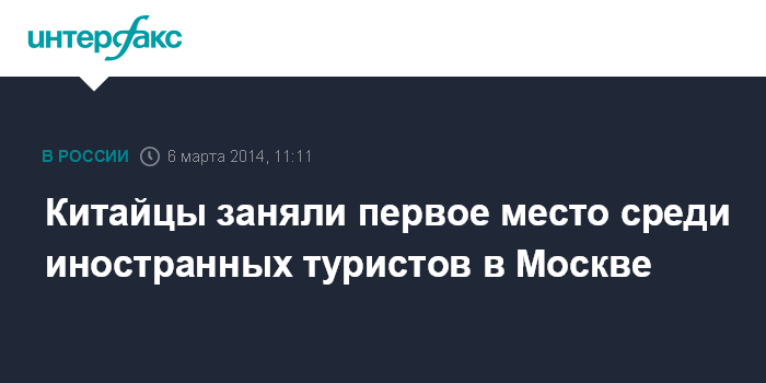 Москва. 6 марта. INTERFAX.RU - Китай сейчас вышел на первое место по въезду в столицу из стран дальнего зарубежья. По данным Пограничной службы ФСБ России, за 2013 год из Китая в Москву прибыло 376, 5 тыс. человек, что на 40% больше по сравнению с 2012 годом. В прошлом году рост турпотока из Китая составил 47%, в 2011 году - 35%.