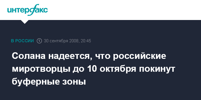 Солана надеется, что российские миротворцы до 10 октября покинут буферные зоны
