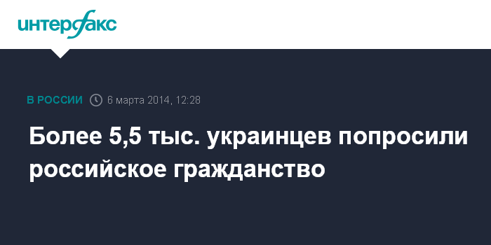 Более 5,5 тыс. украинцев попросили российское гражданство