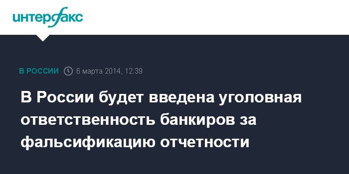 В России будет введена уголовная ответственность банкиров за фальсификацию отчетности