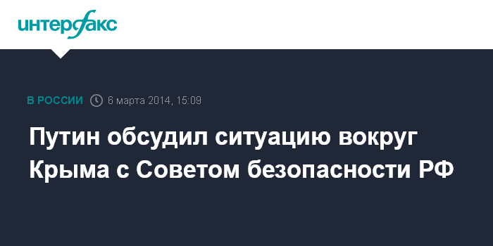 Москва. 6 марта. INTERFAX.RU - Президент РФ Владимир Путин провел оперативное совещание с членами Совета безопасности РФ, сообщил "Интерфаксу" пресс-секретарь главы государства Дмитрий Песков.