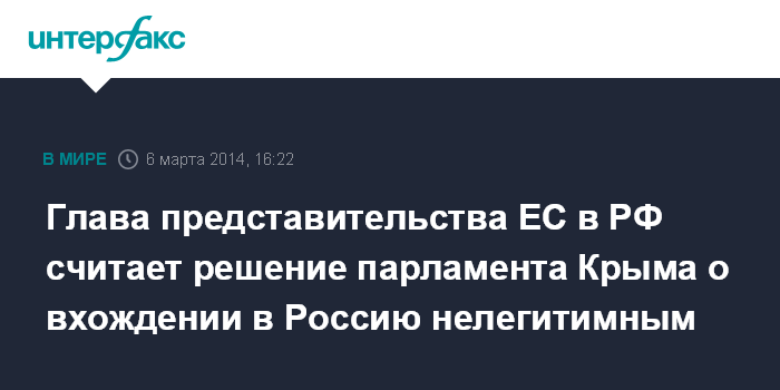 Глава представительства ЕС в РФ считает решение парламента Крыма о вхождении в Россию нелегитимным
