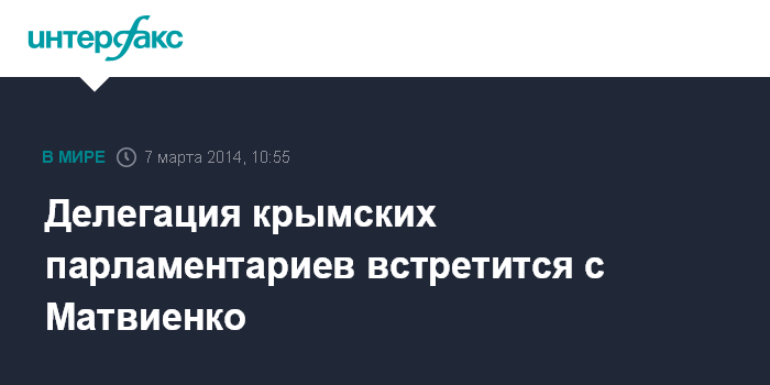 Москва. 7 марта. INTERFAX.RU - Спикер Совета Федерации Валентина Матвиенко встретится в пятницу с делегацией Верховного совета Крыма.