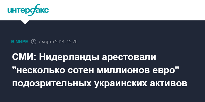 СМИ: Нидерланды арестовали "несколько сотен миллионов евро" подозрительных украинских активов