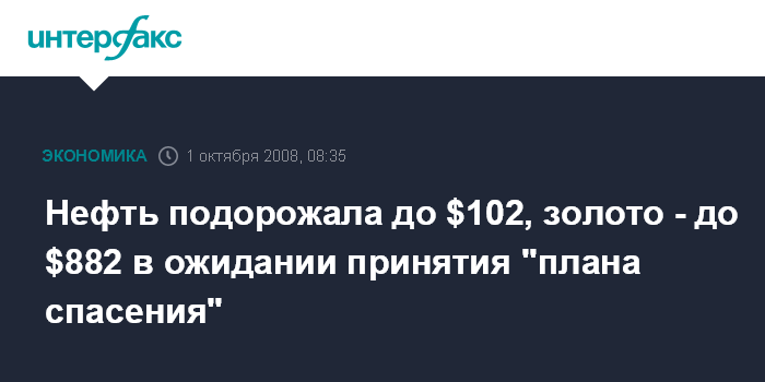 Нефть подорожала до $102, золото - до $882 в ожидании принятия "плана спасения"