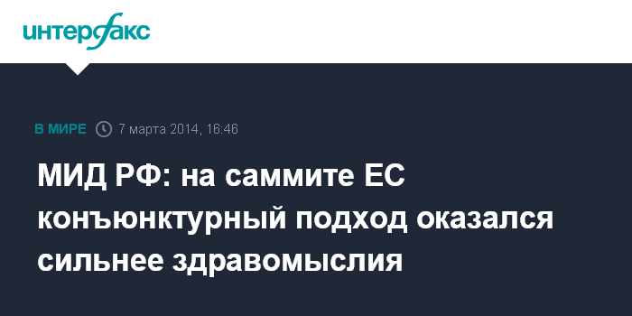 Москва. 7 марта. INTERFAX.RU - В МИД РФ считают, что в ходе внеочередного заседания Европейского совета 6 февраля в Брюсселе по ситуации на Украине конъюнктурные подходы возобладали над здравым смыслом.